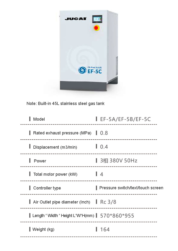 Product name:32kW 3.2m3/min Oil-free scroll air compressor E-40 Silent food and beverage medical laboratory air compressor