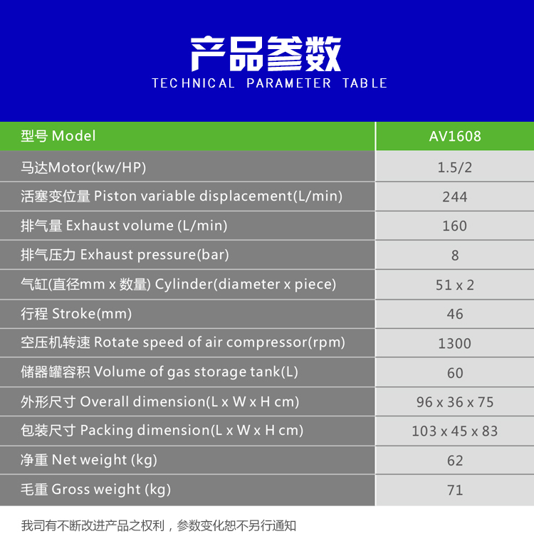 Product name:1.5KW 8bar new AV1608 piston air compressor