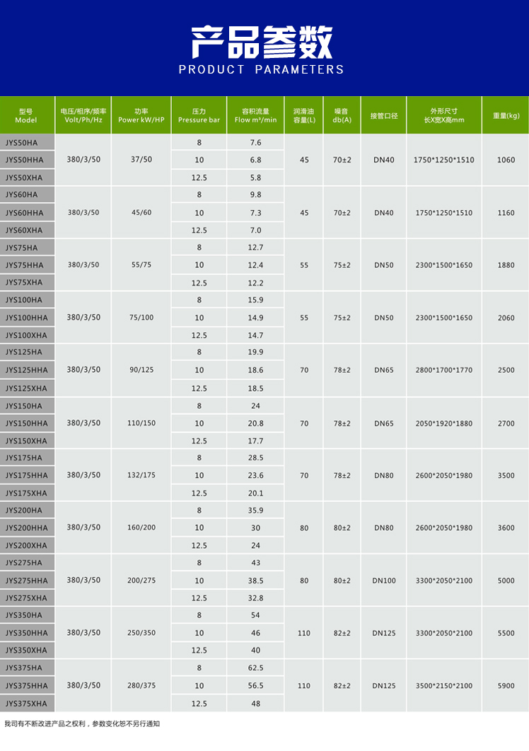 JYS壓縮分體 流量:3.0-60m3/min 壓力:0.3-3.5Mpa
