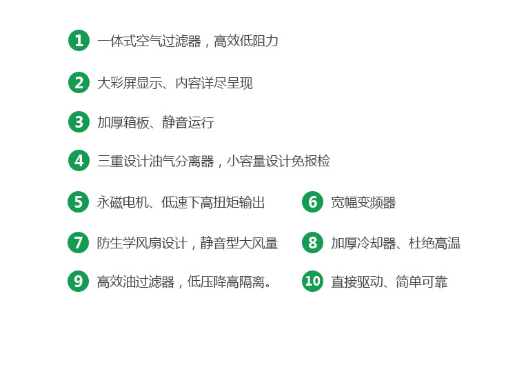 空壓機(jī)整機(jī)能效高于國家一級能效標(biāo)準(zhǔn),每產(chǎn)一立方的氣比行業(yè)大部分機(jī)器用電量少,氣量足,比行業(yè)基準(zhǔn)多10%,適應(yīng)惡劣工況條件,按24小時(shí)滿載運(yùn)行設(shè)計(jì)制造,將機(jī)械和電器完美融合。
